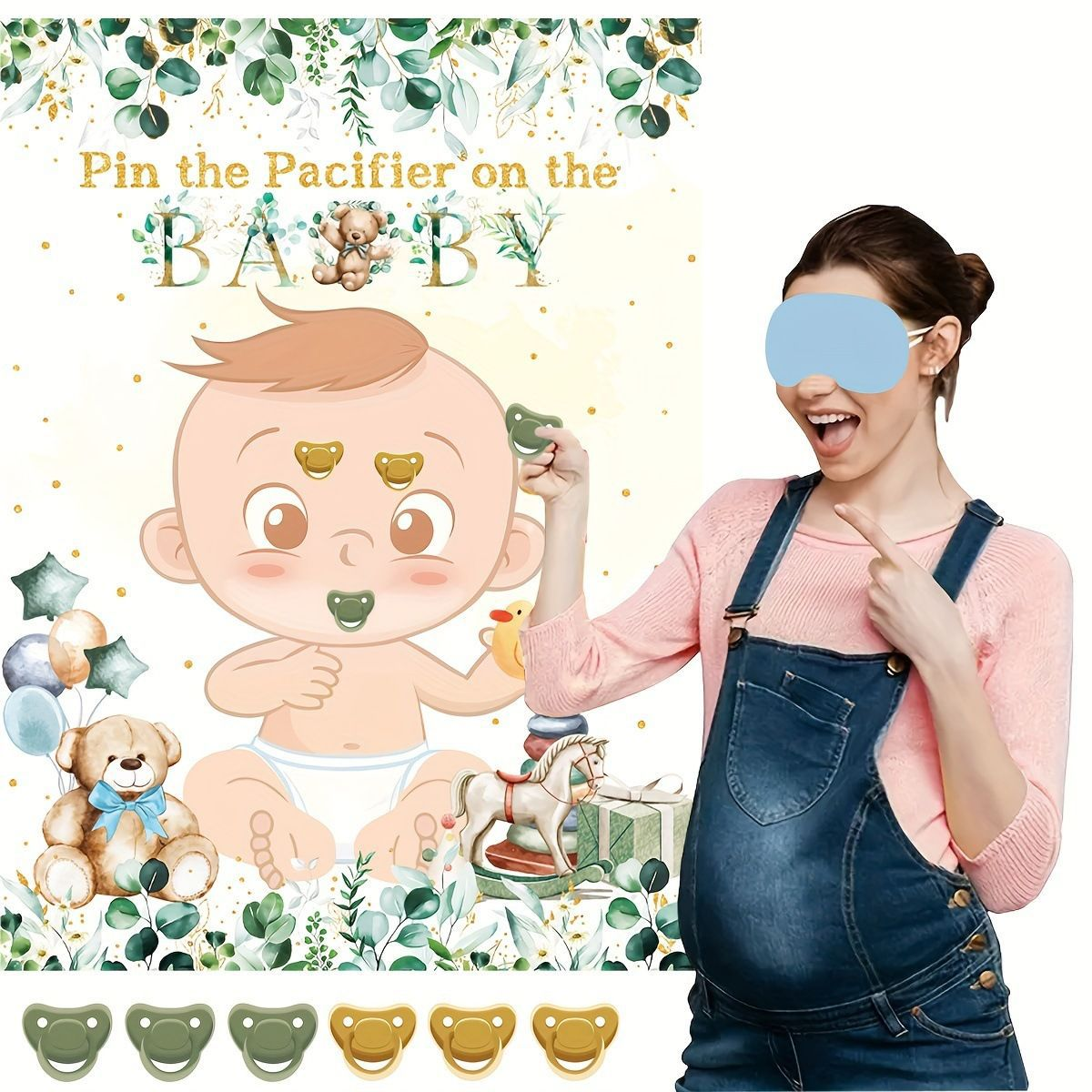 A fun blindfold game poster with sticker noses for baby showers or kids' parties—an interactive activity that guests of all ages can enjoy.