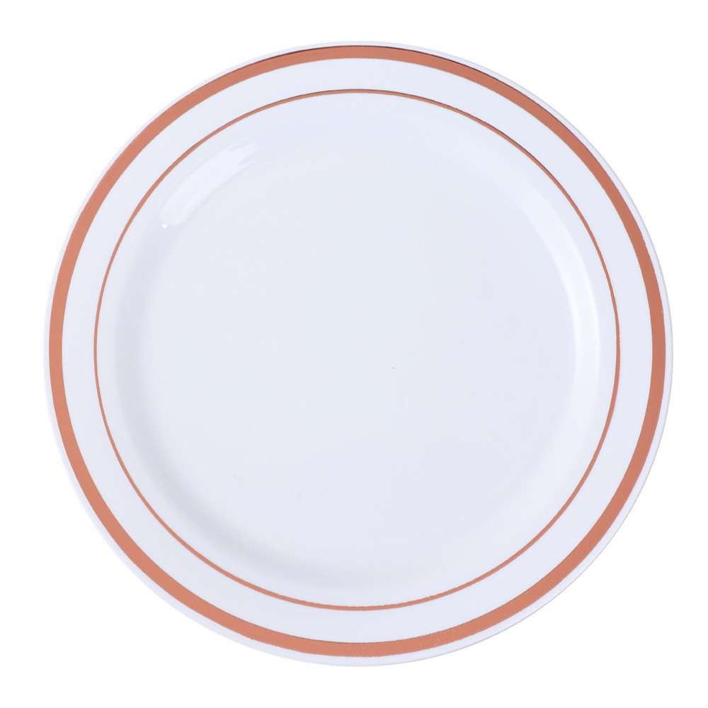 White Plastic Plate with Rose Gold Ring Design – 25.5 cm