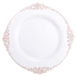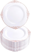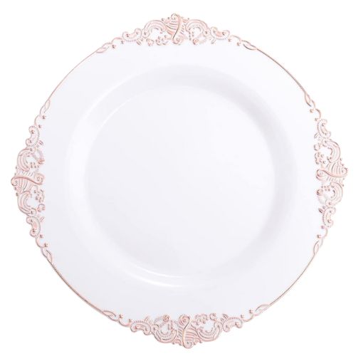 Imponer gjestene med våre hvite og sølvfargede plasttallerkener. Disse fancy platene er slitesterke, men likevel engangs, og gir en problemfri, rimelig løsning for enkel rengjøring etter arrangementet. Perfekt for bryllup.