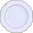 Imponer gjestene med våre hvite og sølvfargede plasttallerkener. Disse fancy platene er slitesterke, men likevel engangs, og gir en problemfri, rimelig løsning for enkel rengjøring etter arrangementet. Perfekt for bryllup.