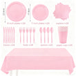 Elegant solid-color paper tableware for chic and convenient party dining across any celebration.